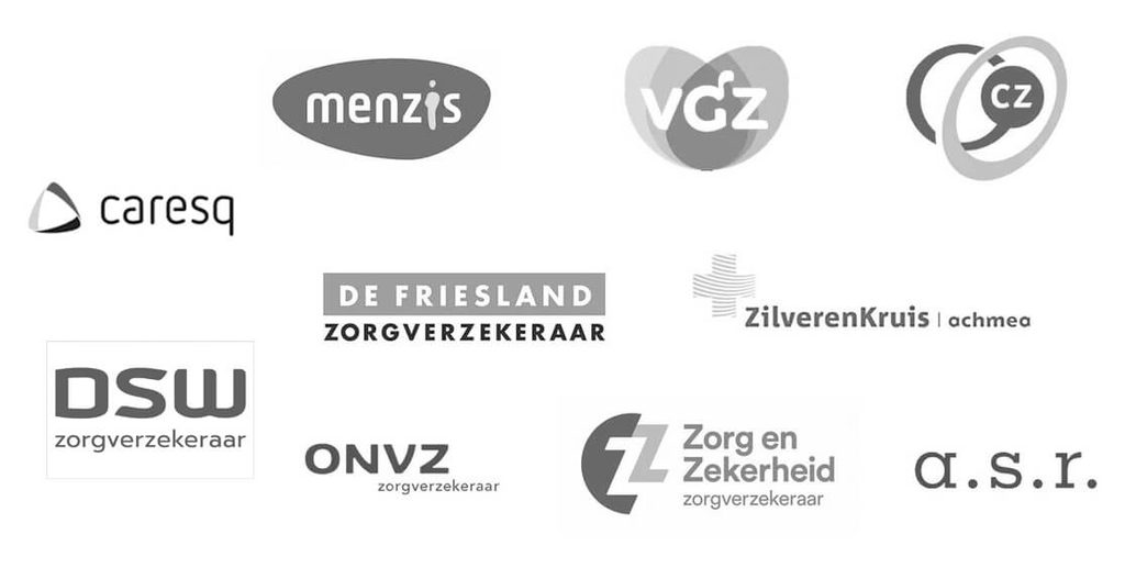 De zorgverzekeraars waar wij 2023 mee samenwerken zijn: Menzis, ONVZ, DSW, Zilveren Kruis, CZ, VGZ. FBTO, RMA en de daaronder vallende labels. Wij hebben in 2023 GEEN contract meer met Zorg & Zekerheid, ENO, A.S.R, Ditzo en Caresq en de daaronder vallende labels.